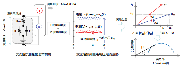 交流阻抗法,是在发电状态下的燃料电池的直流负载电流中叠加微小的交流电流,并对电流、电压波形中的交流