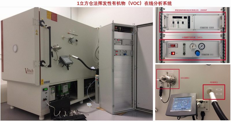 挥发性有机物在线监测系统与 1 立方米实验舱作为主要设备共同构成 VDA276/ PV 3942/ GS 97014-2/3 实验系统。