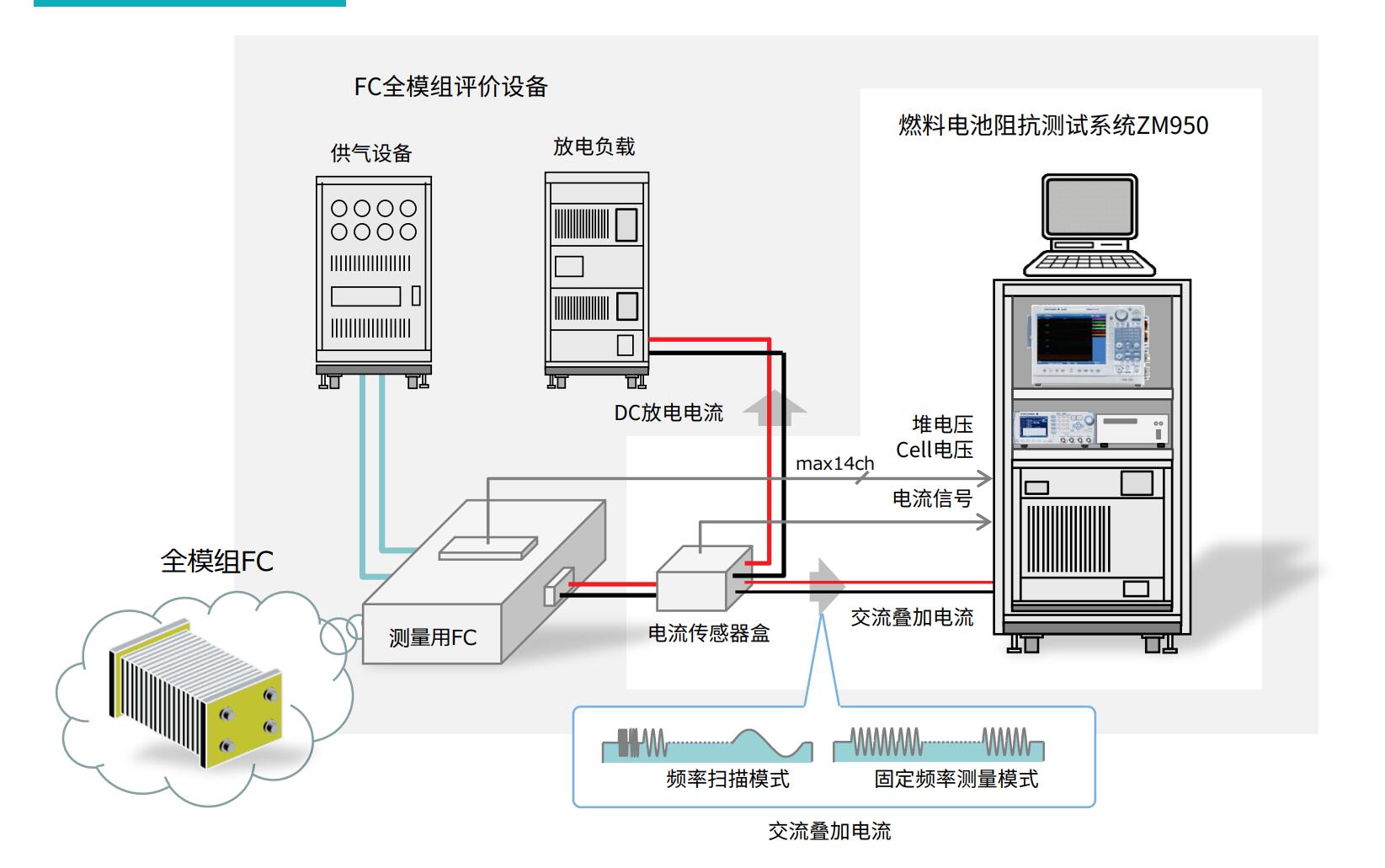 随着FC模组性能的提高,内部阻抗变小,在干扰严重的环境下,评价设备很难测量全模组燃料电池在高电压大电流时的阻抗。